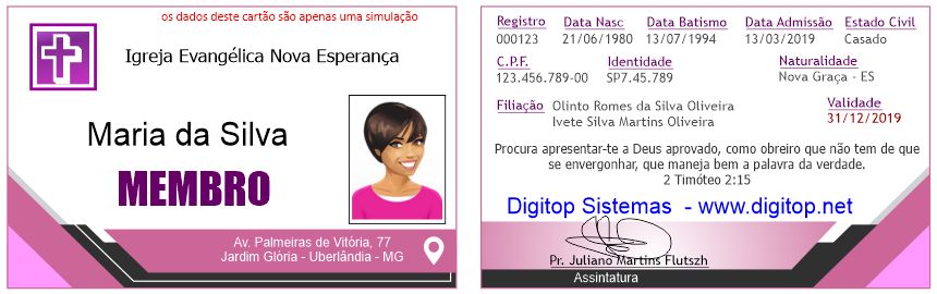 Cadastro de membros ilimitado, listas, certificados, cartões de membros e obreiros, controle de células, EBD, e muito mais.