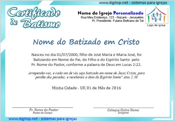Certificados de Batismo, Apresentação de Crianças, Certificados Diversos, Diplomas, Documentos.